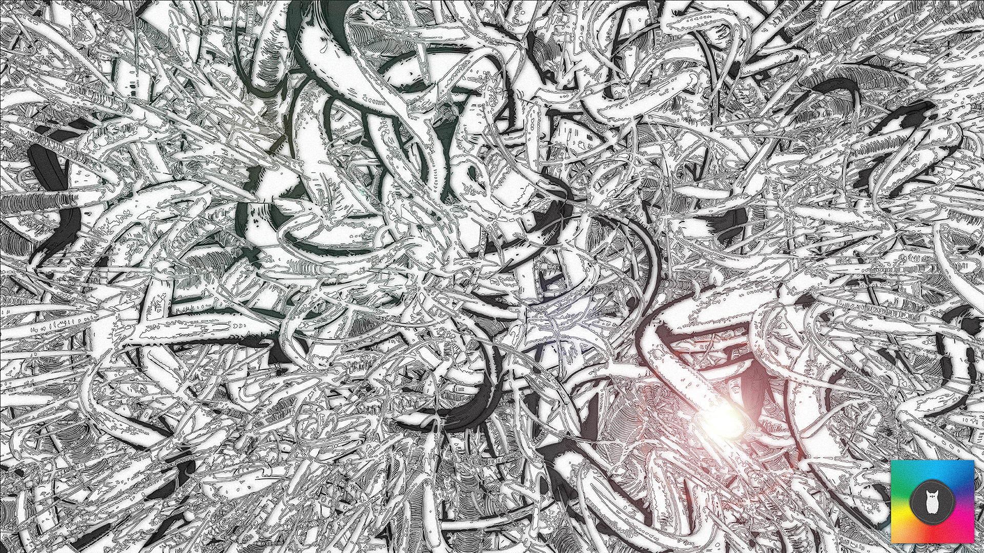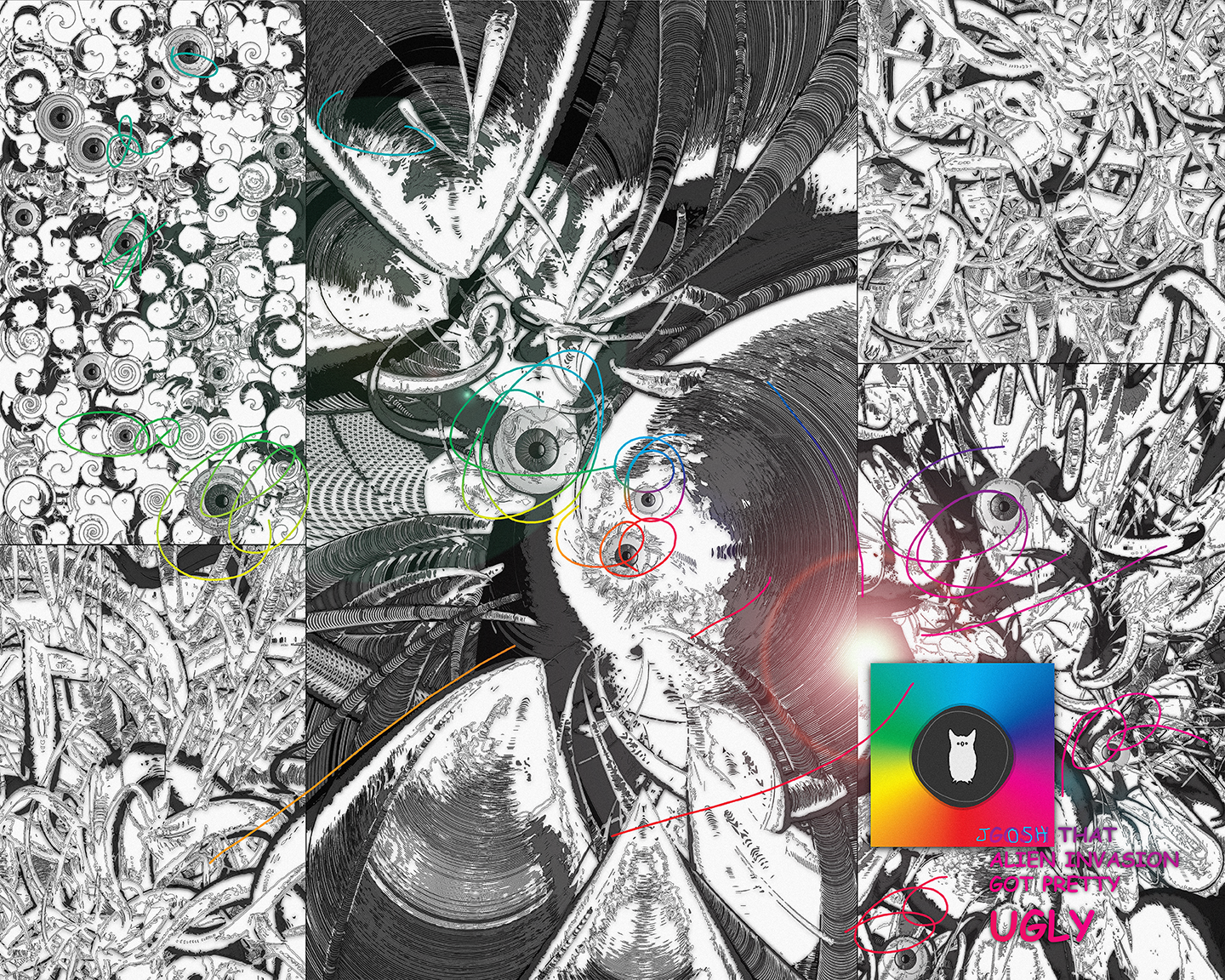 This months theme is UGLY... using posterization on an algorithmic particle system... then using auto trace in illustrator... and then finally using some huge design no no's using filters in photoshop, Comic Sans, etc... a 20x16 poster was created as a giveaway for the Creative Mornings UGLY lecture