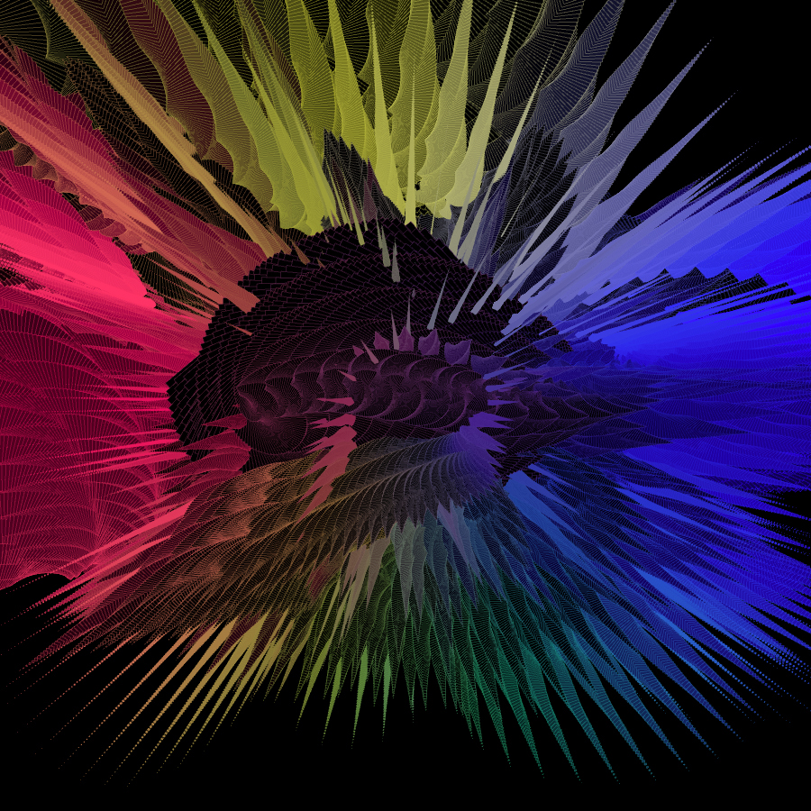 / using processing and the LeapMotion, I track finger movement to create geometry, map scale to finger position in space, and finger position also informs color.