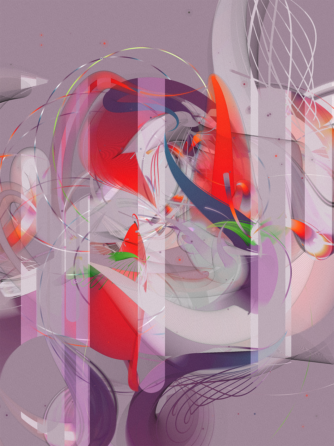 The program generates three invisible planets, each at a different scale - small, medium, and large. Fifty objects then randomly select a planet, a speed to orbit around it, and one of three brush sizes - small, medium, or large. These objects move around their respective planets, painting color and texture across the planetary orbit in three-dimensional space.